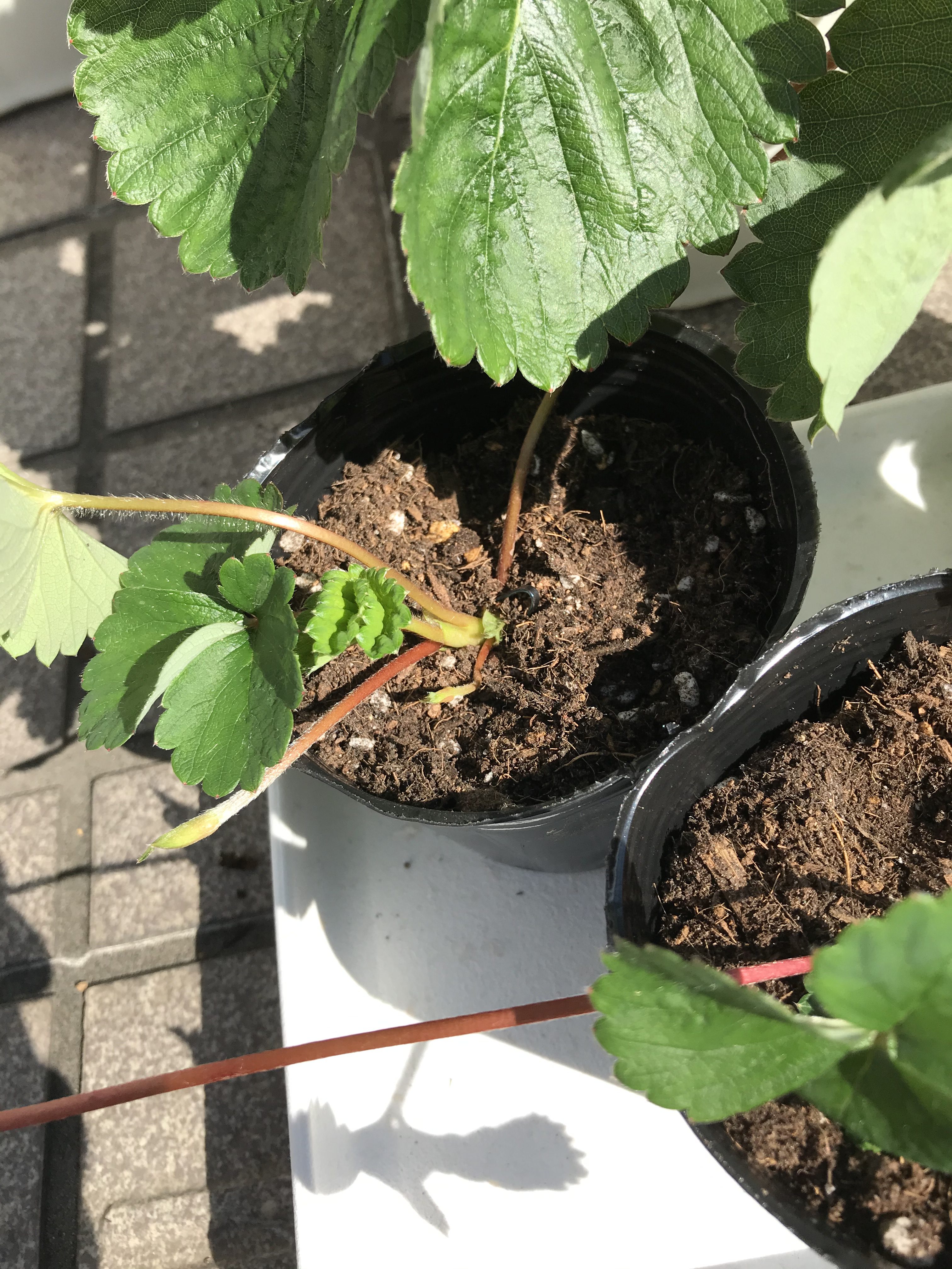 イチゴってのは1つの苗からこんなに多数のランナーが出て大きく育っていくんですね♪