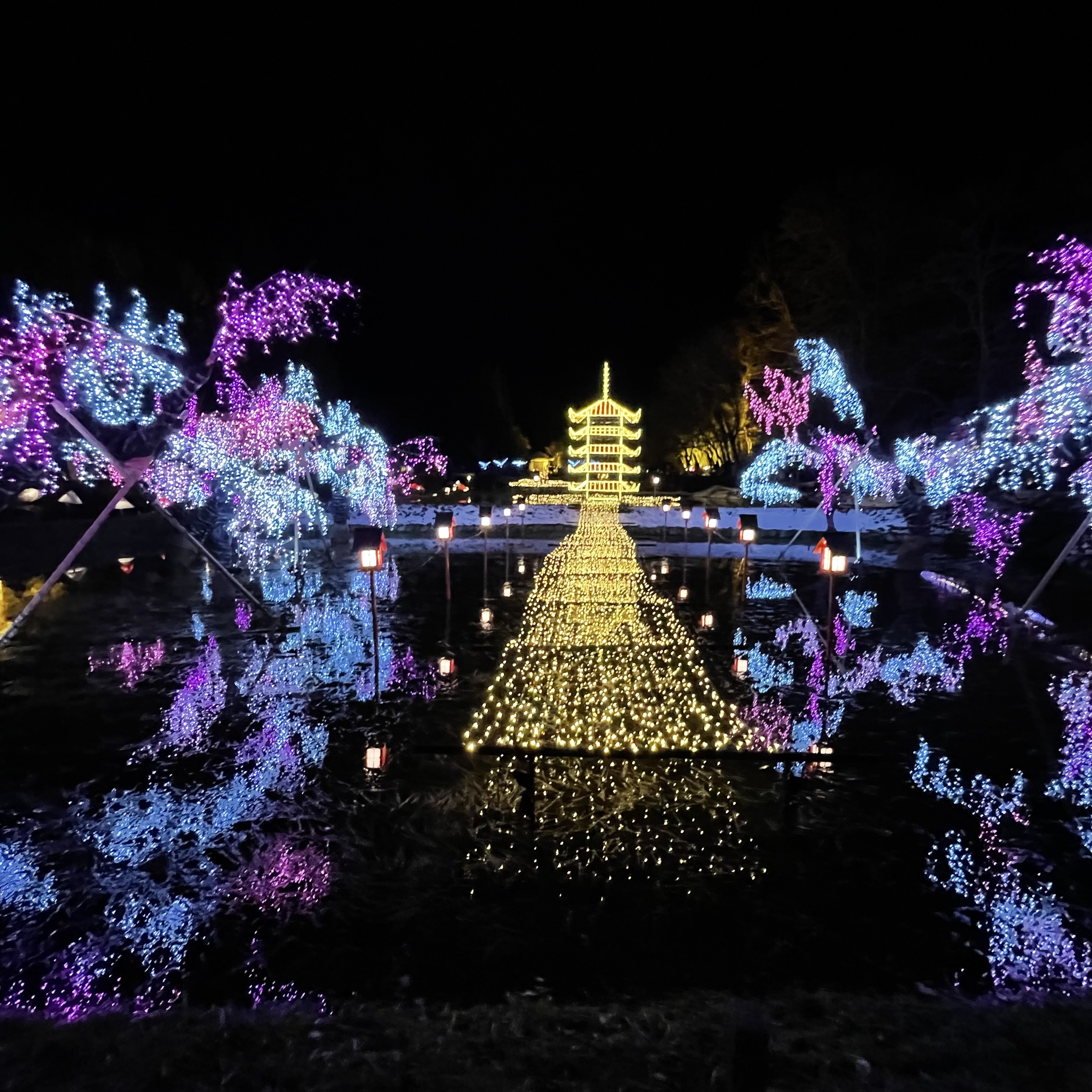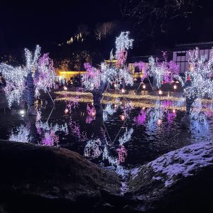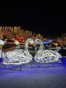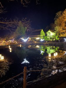 白鳥がハートの形になってたり、列車のイルミネーションや水辺に反射した鳥など、
