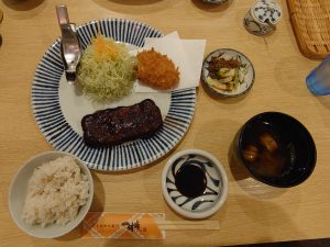 ランチセットはお味噌汁、お漬物がついてきて、ご飯は白米か麦飯が選べます。