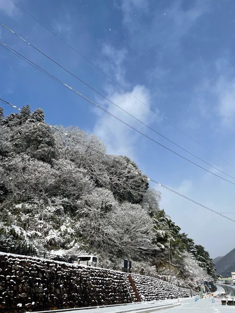 山の木に積もる雪はとても綺麗でした♪