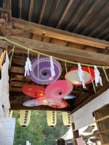 階段を上った先にある門?は季節によって違う飾りになっていて今回は傘が飾ってありました。