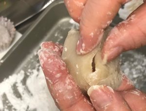 洗って切って水気を取った苺を白餡で包んだ状態です。
