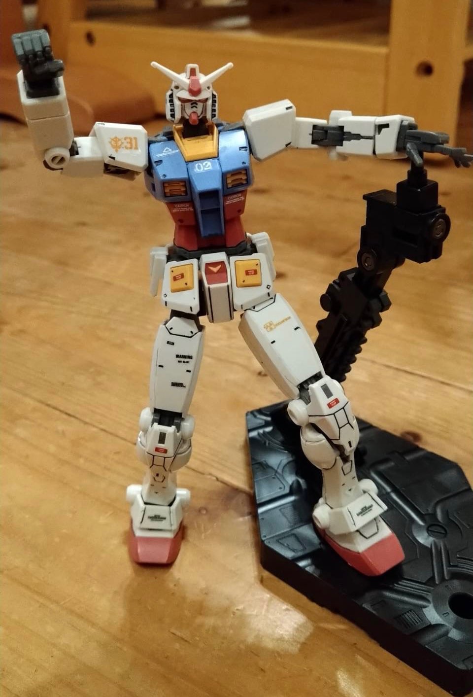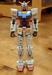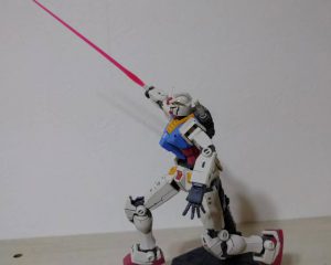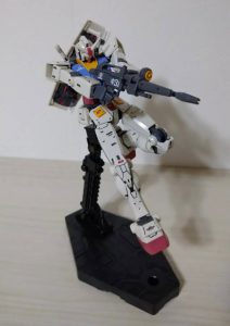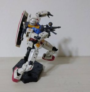 シールとスミを入れてポーズをとると、素組み状態のガンダムよりも高級感がでたガンプラに仕上がりました。