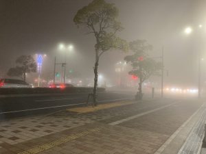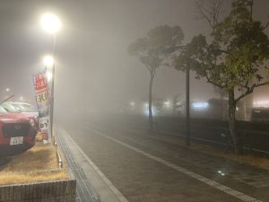 西風新都は山の上にあるので霧に覆われることは結構あります。