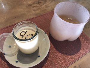 桃ジュースはももじりグラスに入れてくれます!なんとも言えないこのシルエット(笑)