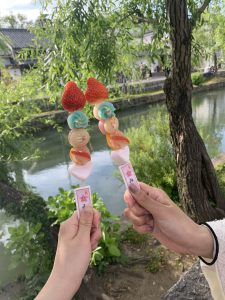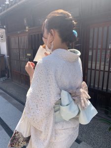 着物を着て食べ歩きしました☆この日はいい天気で少し暑かったです・・・