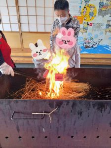 藁焼き体験をして自分で焼いたカツオを食べました。