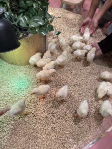 木にはナマケモノ、隣のブースにはカピバラ、アヒル…大量のひよこ
