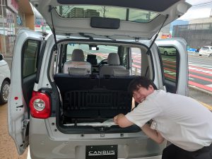 トランクには傘置き場も追加されたムーヴキャンバス、土曜日から試乗が可能です。