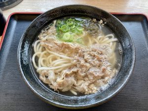 私は細うどんが大好きなので、今回は細うどんの肉うどんにしました!