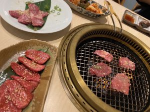 店内の雰囲気を伝えるため、僕がお肉を焼いている写真も載せておきます(笑)。