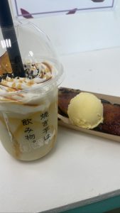 看板メニューの「焼き芋は飲み物。」と「お芋ブリュレ」を頼みました。