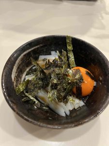 イカの醤油バター焼きに卵黄刺し身と、味もばっちりでした!!