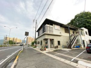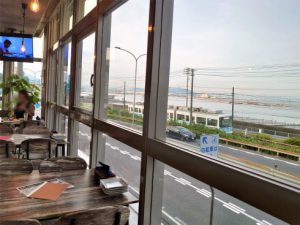 国道2号線・上り線沿いの建物の2階部分で営業されているので、