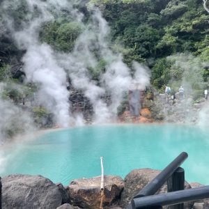 とてもきれいなエメラルドグリーン色のお湯が一面に広がっていました。