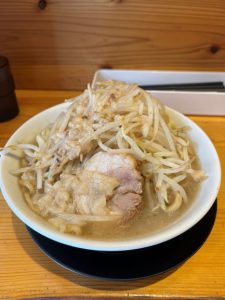 今回は初めてということでラーメン200ℊ、にんにく普通、野菜あぶら増し