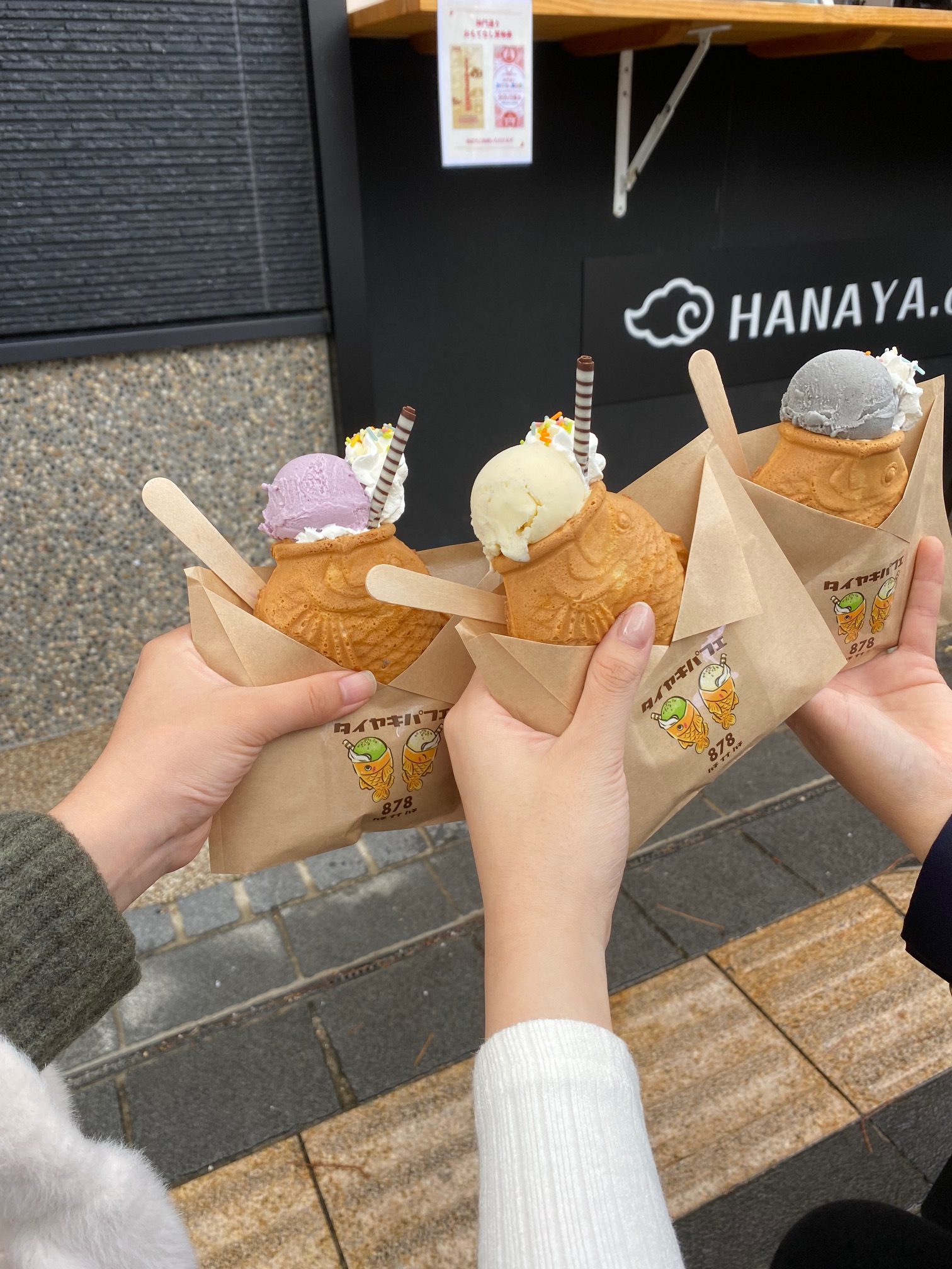 アイスクリームの味と、中のクリームをカスタードか餡子かを選ぶことができるので、