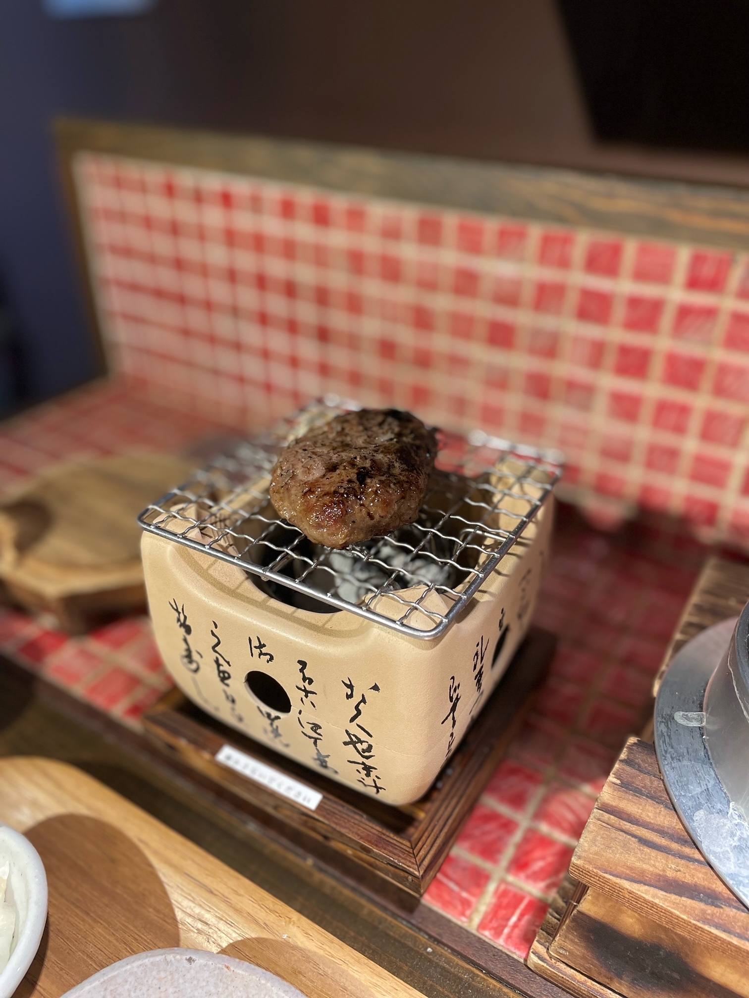 1つ1つの席に七輪が置いてあって熱々のハンバーグが食べれます😘
