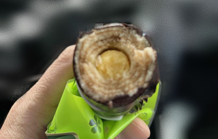 バウムクーヘンと真ん中にクリーム!