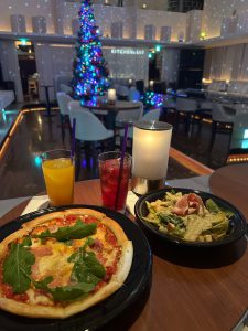 今回はピザとシーザーサラダ、デザートにガトーショコラを注文しました‼