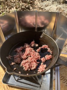 家にあるもをあさり、レトルトの麻婆豆腐を持って行き作ってみました。