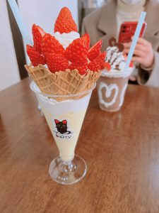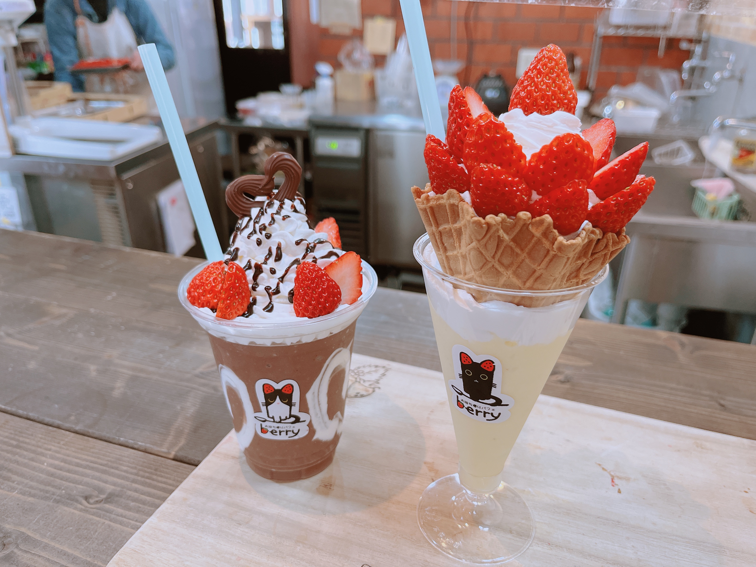 友人はいちごチョコレートドリンクを注文しまた🍓