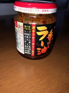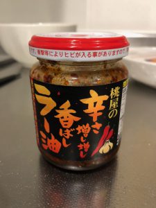 桃屋さんの「桃屋の辛さ増し増し香ばしラー油」。