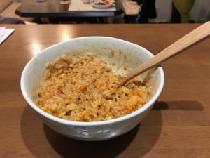 いつも通り作った卵かけご飯、通称TKGにこのラー油をスプーン一杯と半分ぐらい入れると・・・あら、不思議!!