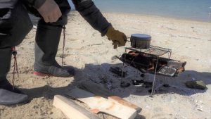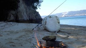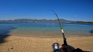 ご飯を炊きながら、置き竿でカレイを狙います!