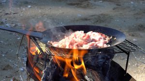 当たりがあるまでに、お肉や野菜を炒めます!