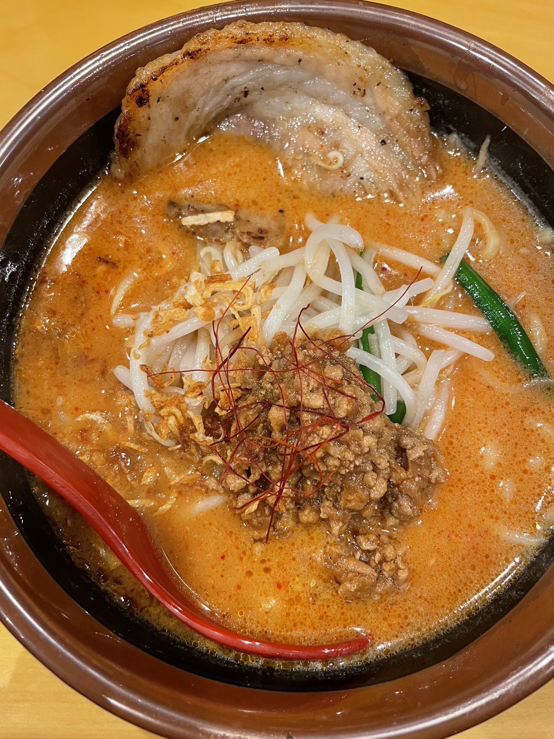 中太麺に辛味噌が良く絡んで、濃厚でした!!