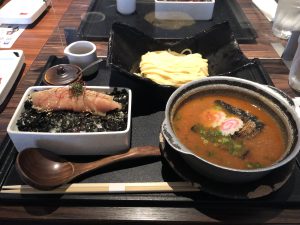 福岡にある「元祖博多めんたい重」というお店でめんたい重とつけ麺を食べました。