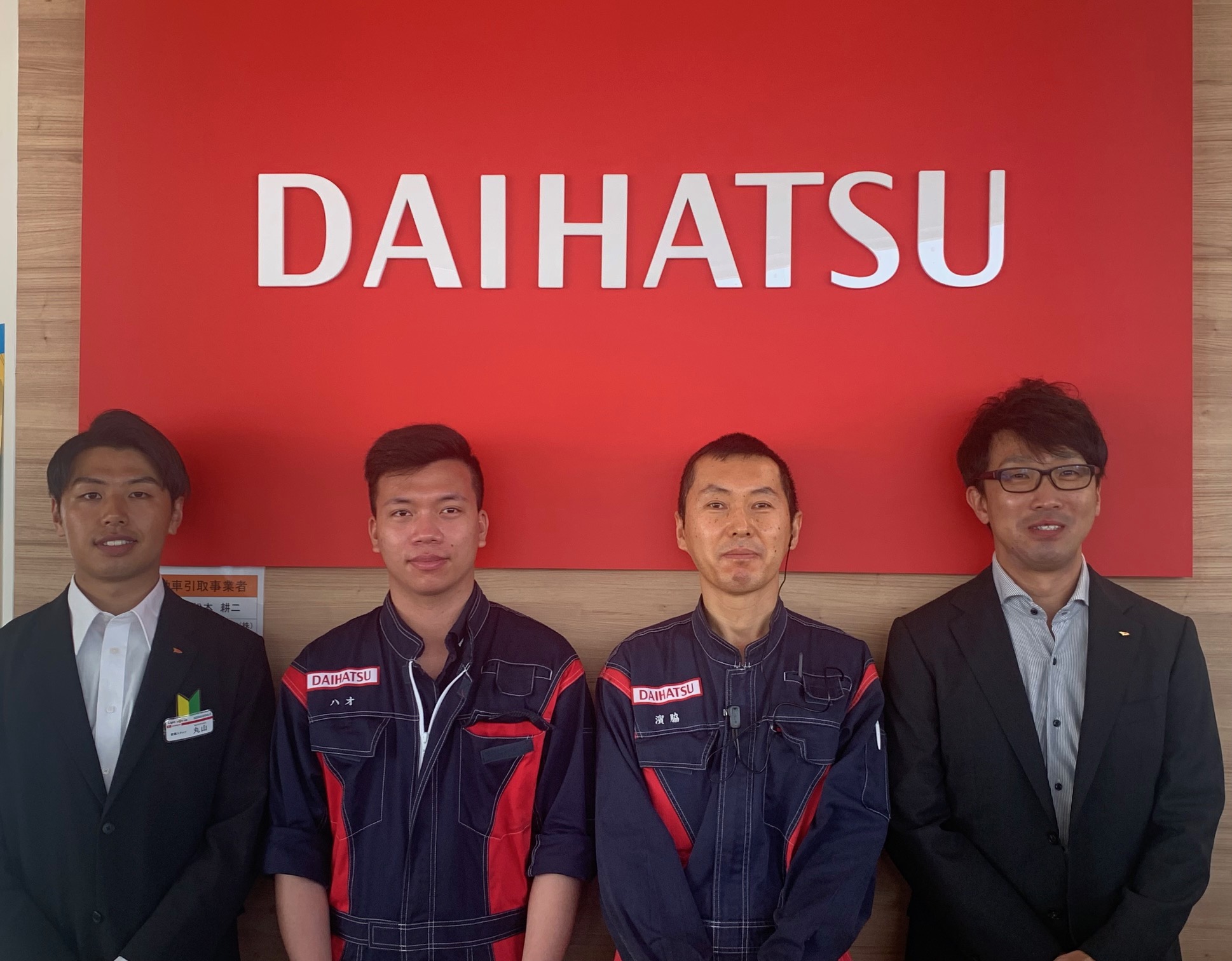 店長の出店、サービススタッフの濱脇、ハオ、営業の丸山です。