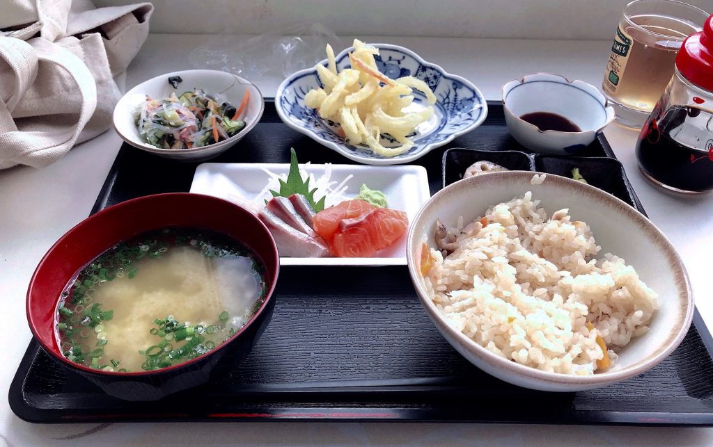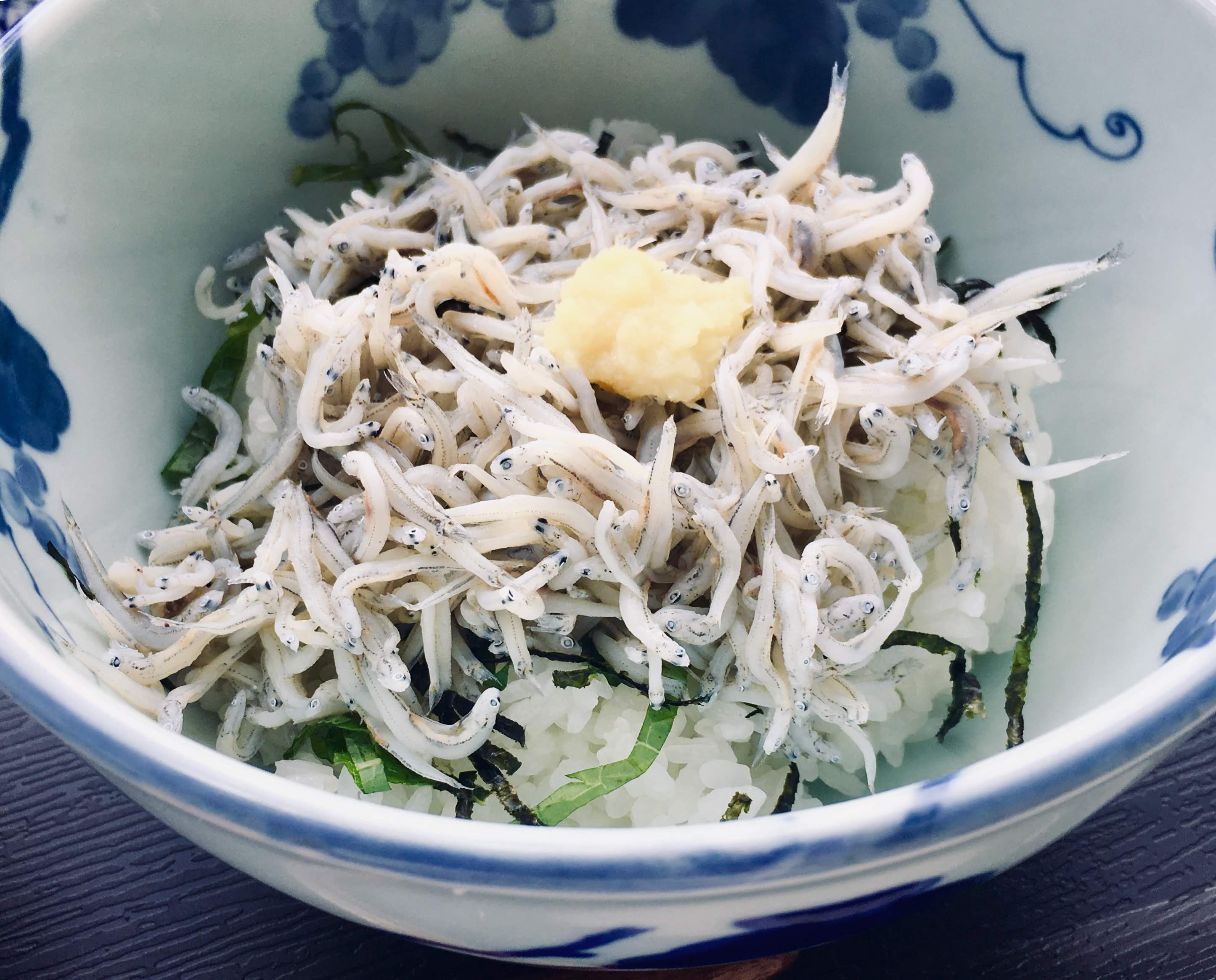 新鮮なしらすや刺身に魚のあら入りの味噌汁