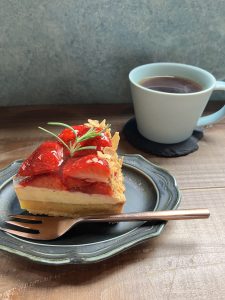 1軒目は、国泰寺にあるカフェで期間限定のいちごタルトを食べました。