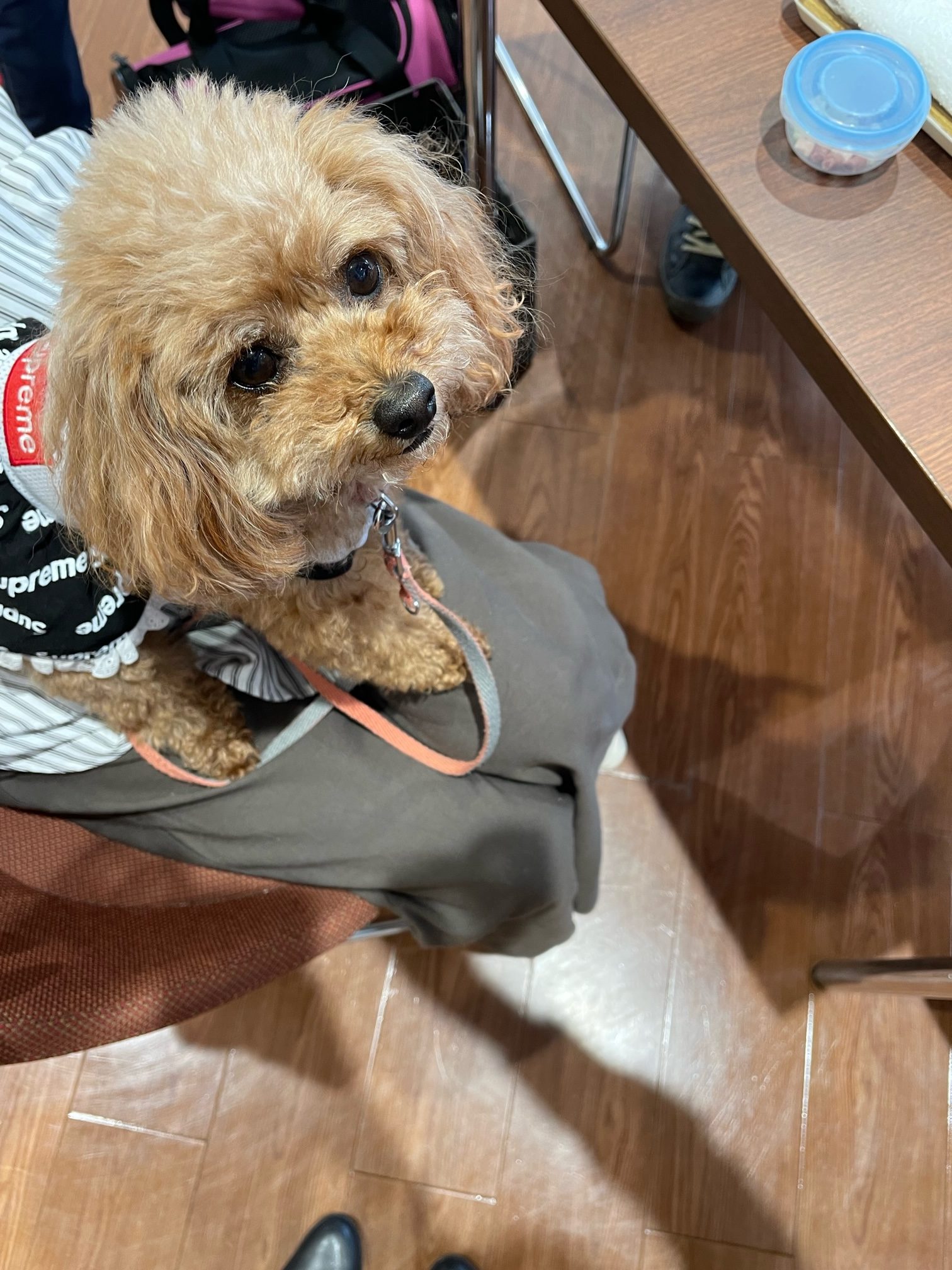 観音店ではペット同伴の場合は、リードを付けて膝の上、もしくは