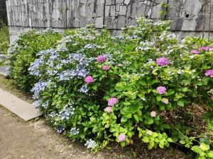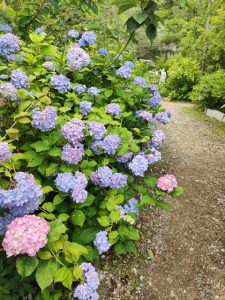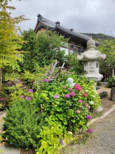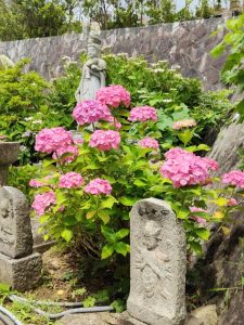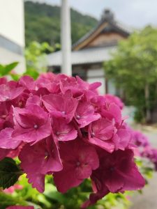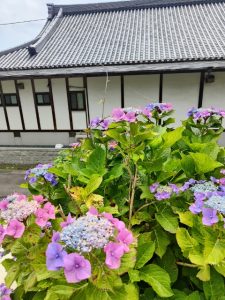 お寺の周りにたくさんの紫陽花があり、あじさい寺の名前の通りで、