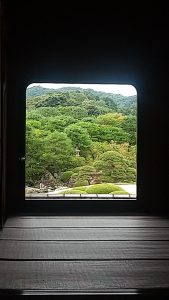 窓枠がそのまま額縁になったかのような演出で部屋の中から美しい庭園が楽しめます。