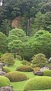 庭の中には高さ15mの「亀鶴の滝」も流れていて壮大な自然を凝縮したような庭園です。