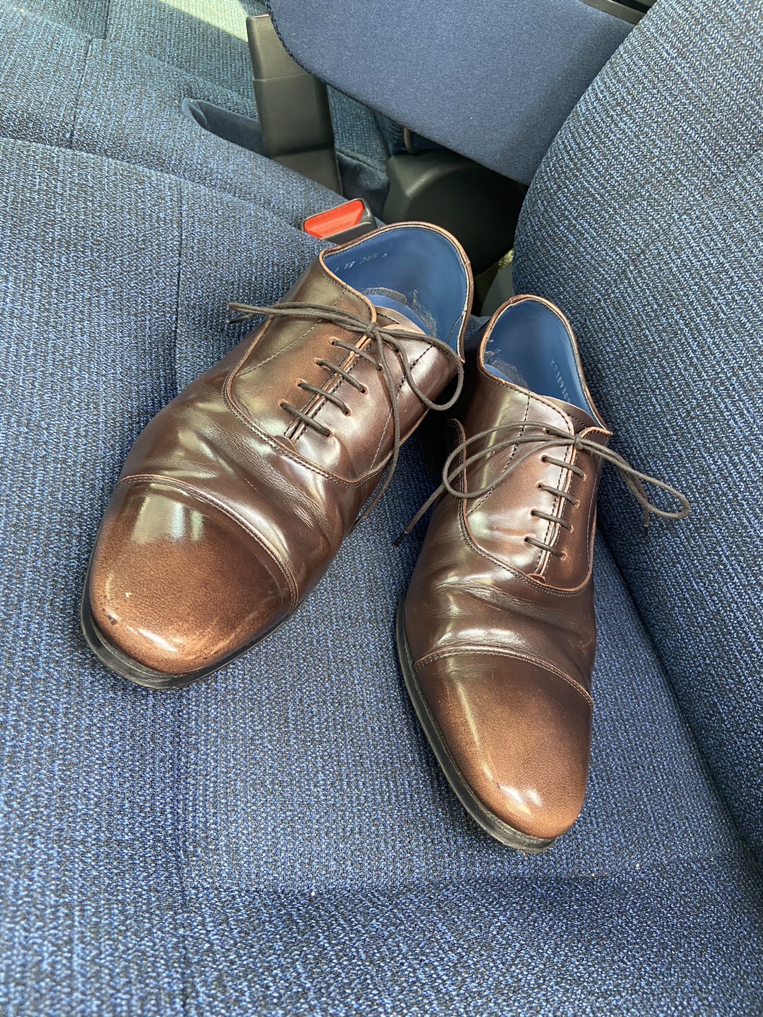 「革靴は100均の靴磨き用のスポンジしか持っていないです」と伝えると、本来なら1回数千円するプロの靴磨きを今回は特別にサービスでやっていただけるとの事でしたので、試しにやってみました!