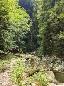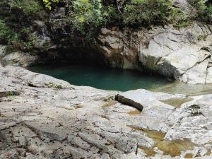 全長700mの渓谷で、「孫淵」と呼ばれる甌穴(岩の穴)には