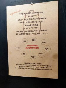 店内にはたくさんのぬかの瓶が実験室の用に並んでいました。