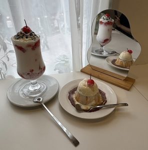 今回はクロッフルと、プリンと、いちごパフェを注文しました!