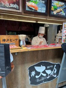 神戸の中華街に行ってきました。 中華街ではいろんなものを食べて回りましたが、神戸牛の肉寿司が一番美味しかったです。