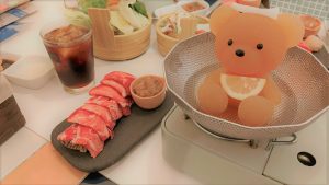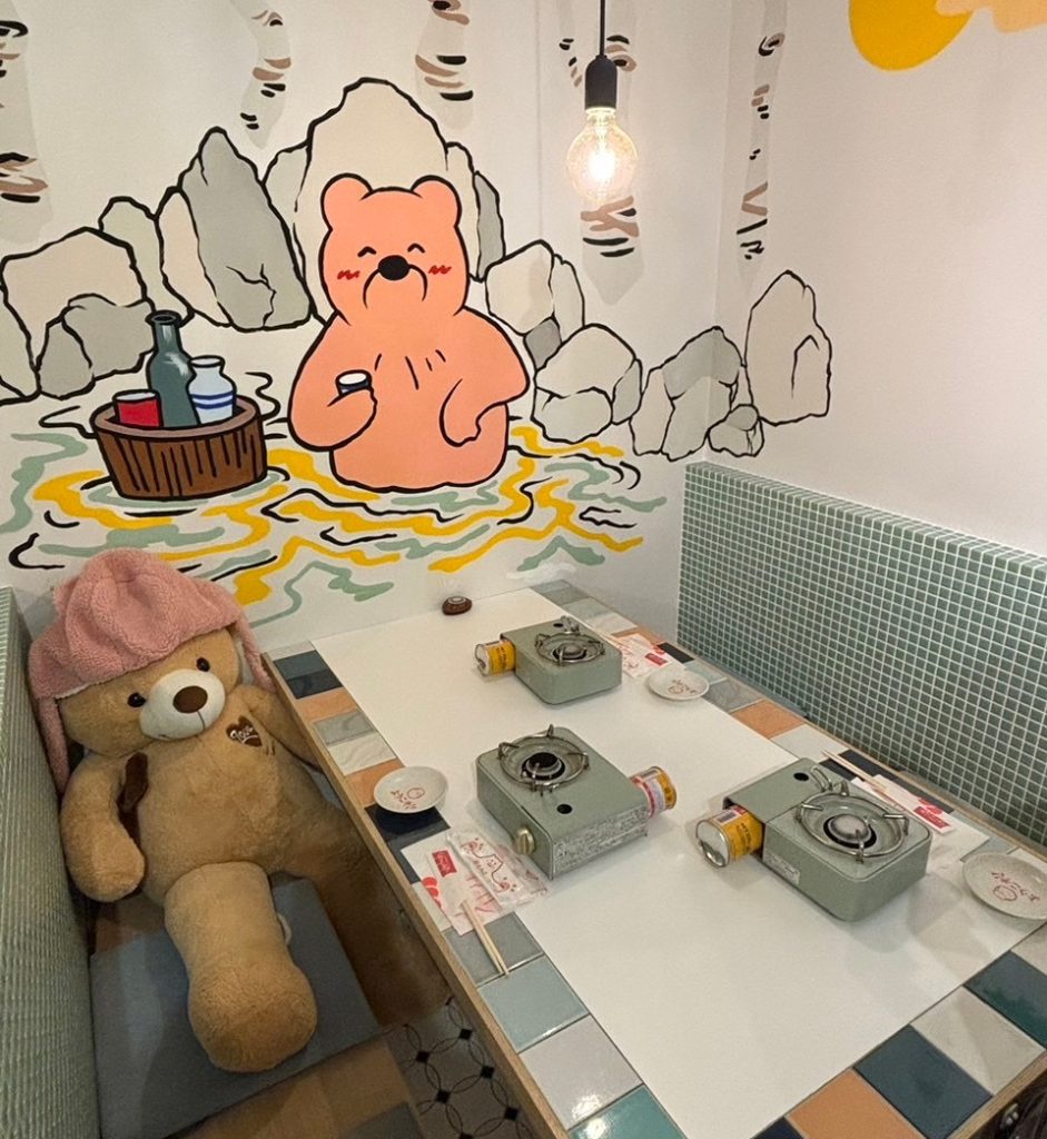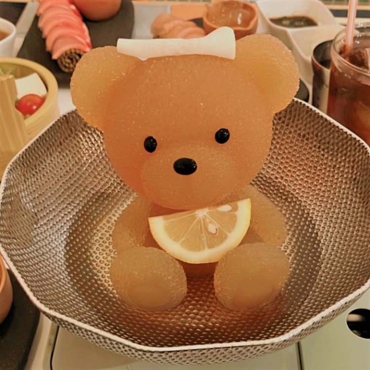 鍋は一人につきひとつで、出汁が熊の形をしています。