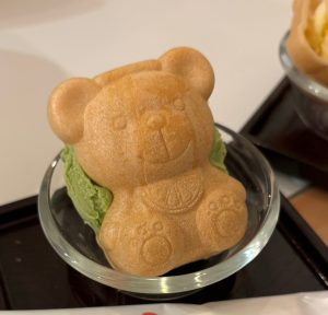 デザートに頼んだアイスもなかも熊の形で可愛かったです。