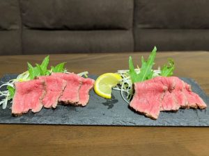 牛肉ブロックを冷蔵庫から出してすぐに炙るのがポイントです。