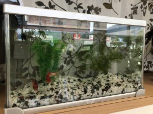 ショールームで金魚を飼い始めました。