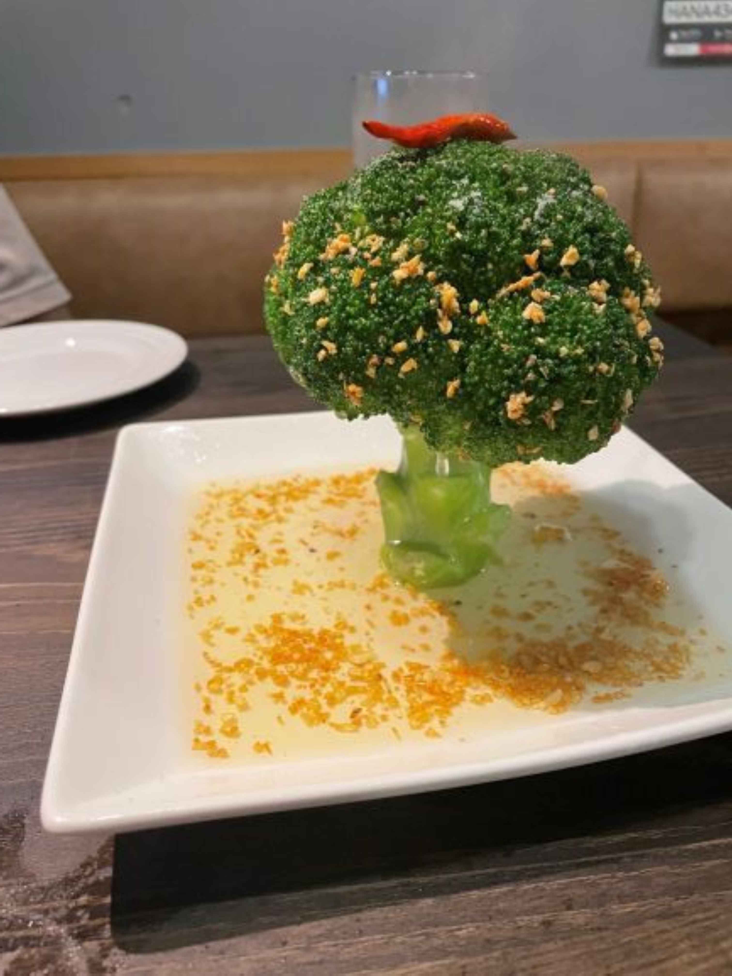 店の名物かはわからないのですが、まるごとブロッコリーのガーリックオイルがけを頼みました。