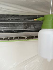 私はまだまだ初心者なので、薬品などは使わず、台所洗剤の泡スプレーで各部に噴射して歯ブラシで奥の方にある送風のファンもゴシゴシゴシゴシ、カビやほこりを掃除しました。